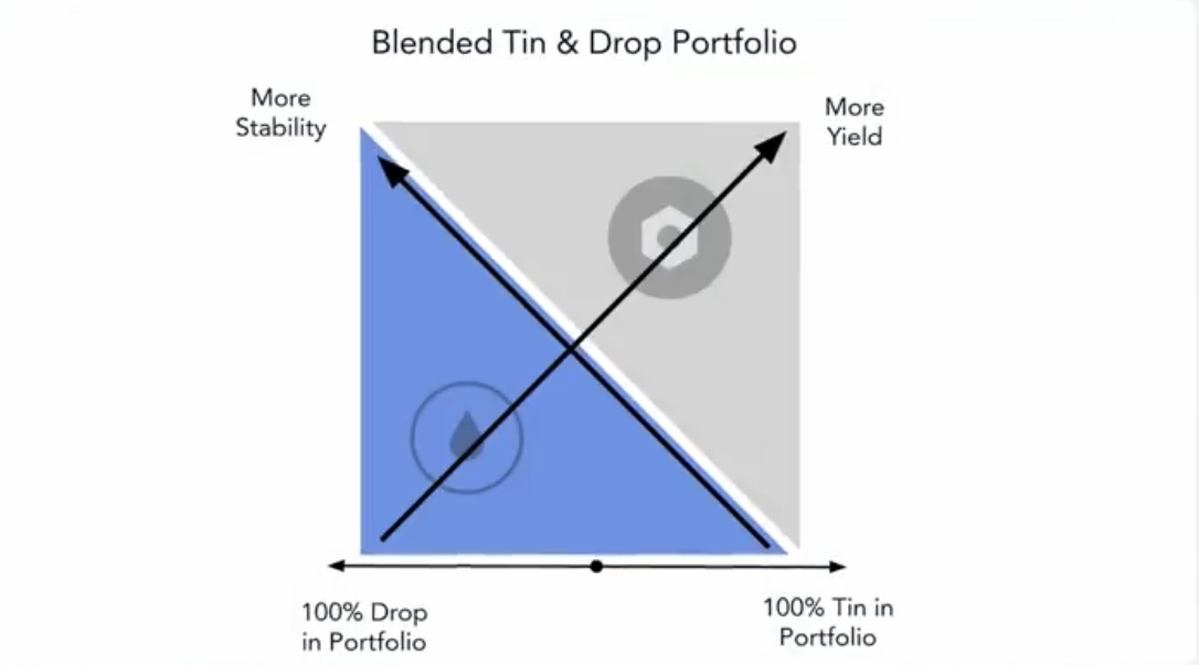 The way I view this is DROP are bonds(lower risk, lower yield) and TIN are stocks(higher risk, higher yield)